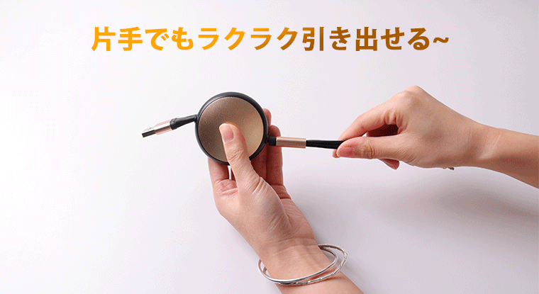 片手でもスムーズにケーブルを伸ばすことができ、使い終わった後は簡単に収納可能です。