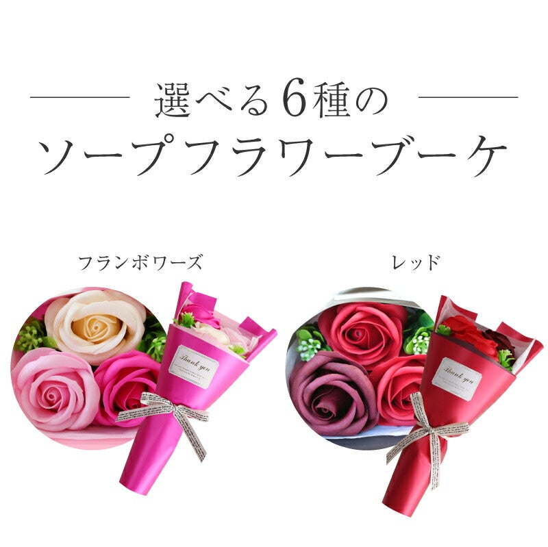 ブーケはピンク・ブルー・オレンジ・レッド・グリーン・パープルの全6種類から選択可能。