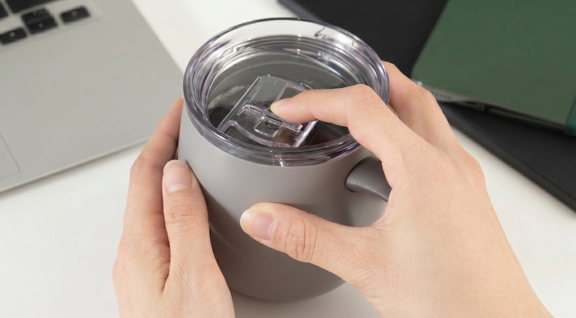 マグカップは真空断熱二重構造で、飲み頃の温度を長時間キープ。