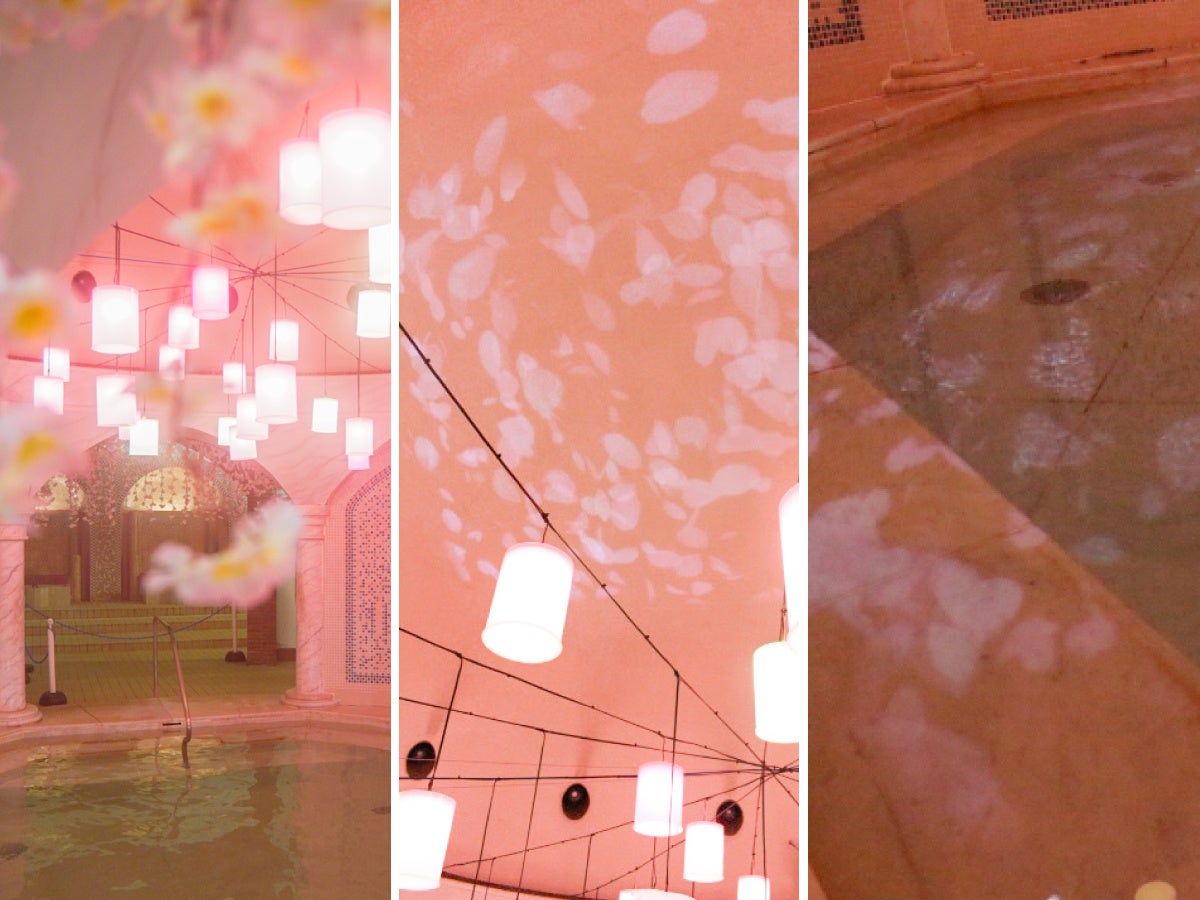 また、天井からは約40個もの桜カラーのランタンを吊り下げ、桜色の優しい光が灯ります。