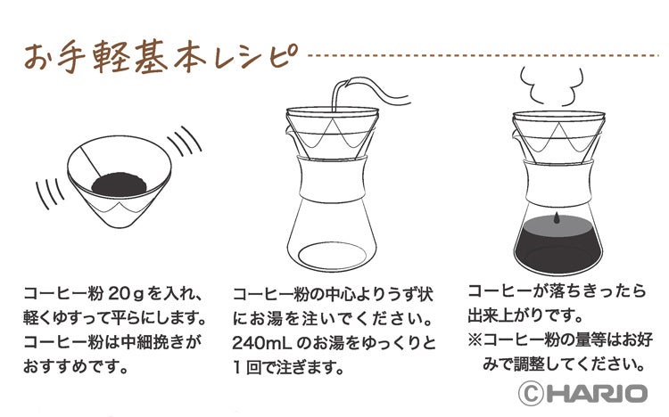 本製品は、ハンドドリップにありがちな「蒸らし30秒」「数回に分けて注ぐ」「3分かけて抽出する」といったルールを一切必要とせず、一回注ぐだけ、約40秒で安定した味わいのコーヒーを抽出することができます。