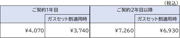 ※3:2年目以降の月額料金は「ガスセット割」が敵意用されたものです。