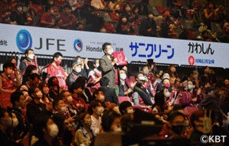 ①対象試合にて、川崎市とどろきアリーナ2階客席にリボンビジョン広告を掲出