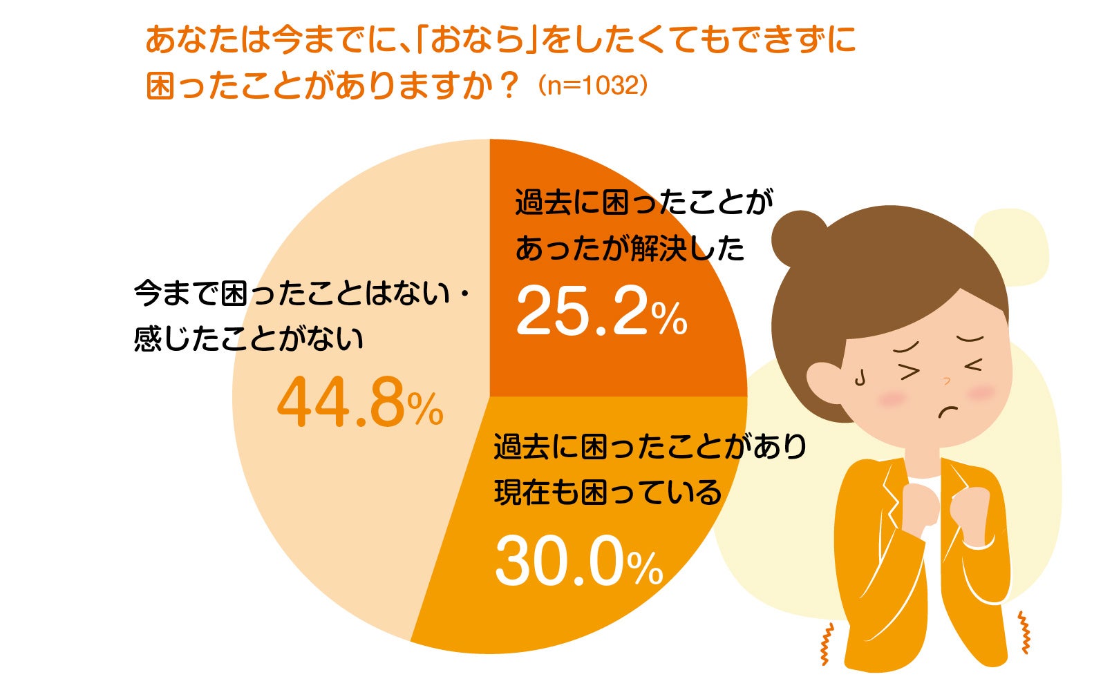 ■半数以上が「おならをしたくてもできず困ったことがある」「『お腹のガスによるハリ』に困ったことがある」と回答