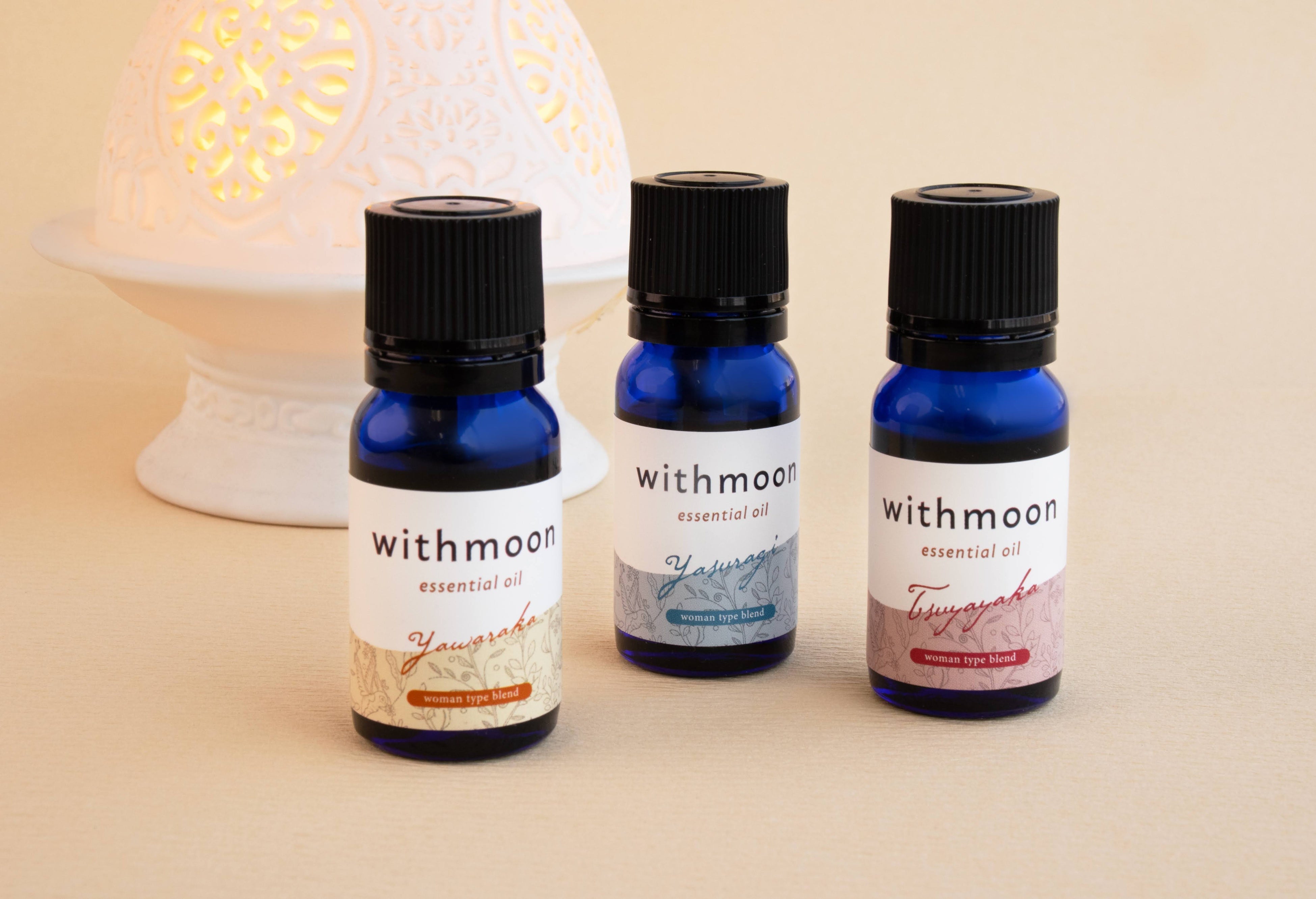 今回、この「女子のおまもり エッセンシャルオイル」を「withmoon エッセンシャルオイル」のタイプ別ブレンドとして、ブランド名を変更いたしました。ウーマンバランスセルフケアブランド「withmoon(ウィズムーン)」は、女性ホルモンの観点から、生理などの女性特有の悩みに寄り添う日常のセルフケア商品を展開しているブランドです。