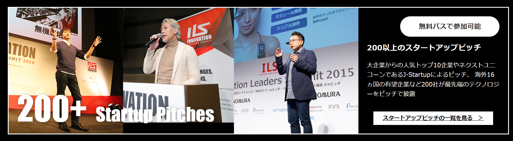 大手企業のアセットとスタートアップのアイデアやテクノロジをマッチングし、グローバルイノベーションを生み出すことを目的に2014年に発足。前回は1万4000名以上が参加。メインの「パワーマッチング」は、国内外の主要VCや政府機関・外国機関など約110機関のILSアドバイザリーボードが推薦する600社以上の有望スタートアップと100社以上の大手企業が参加する新事業・協業マッチングプログラム。