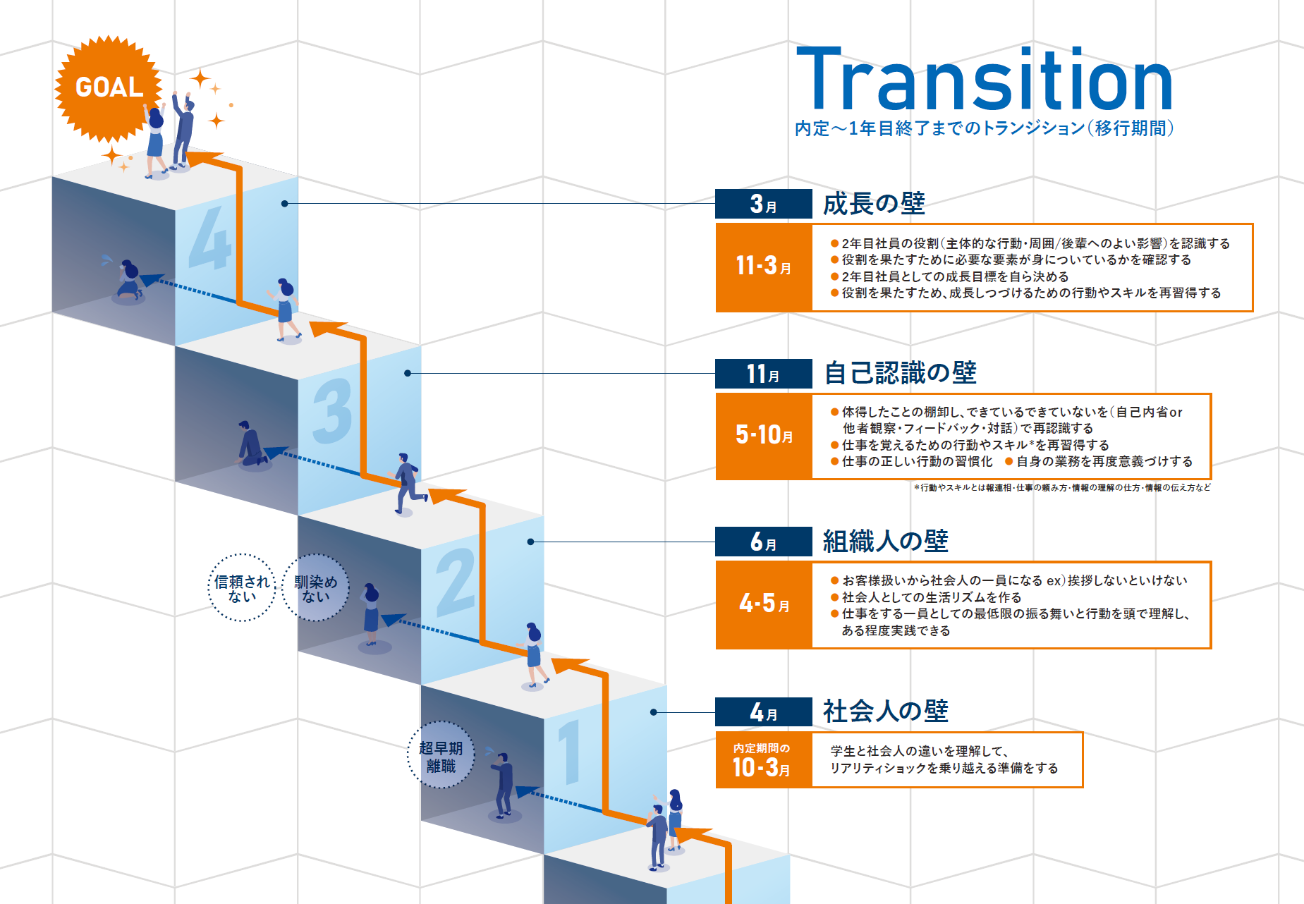 内定時代から1年目終了までの間で経験する「4つの壁」とは