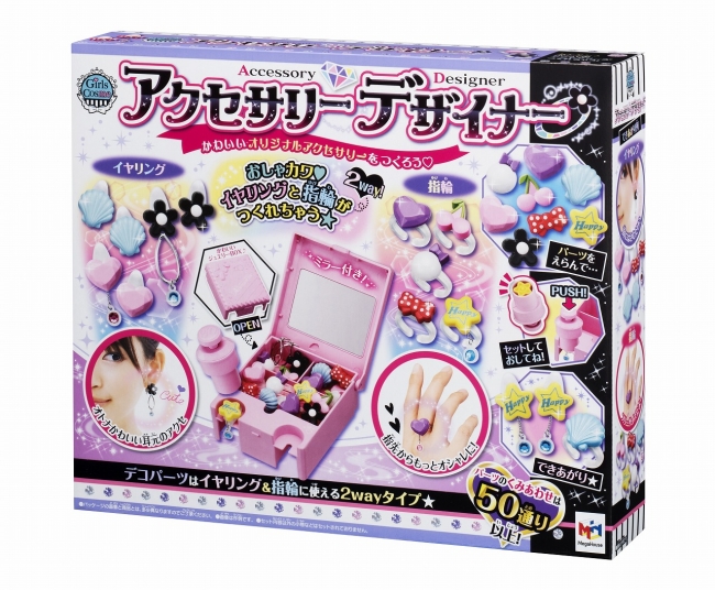 株式会社メガハウス (バンダイナムコグループ、代表取締役社長:奥山嚴/東京都台東区)は、イヤリングと指輪作りが楽しめる玩具「アクセサリーデザイナー」を2015年6月上旬より発売いたします。