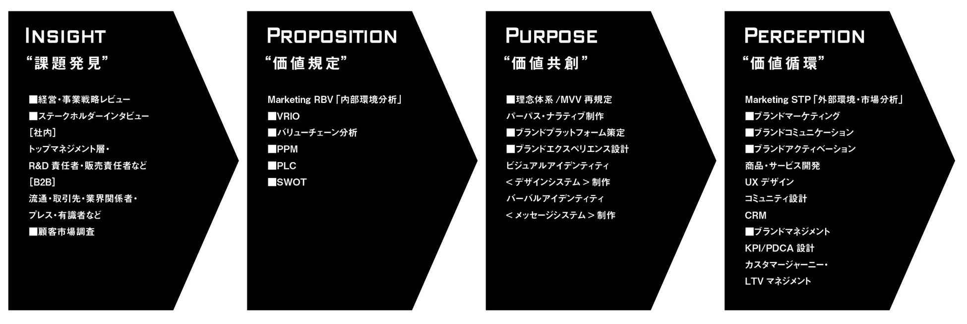 こうした課題発見から価値規定、価値共創まで進むことができれば、最終ステップで、実現のための最適なコミュニケーション設計、アクティベーション開発がご提供可能となります。このすべてのプロセスをワンストップで対応し、経営課題の解決まで伴走してまいります。