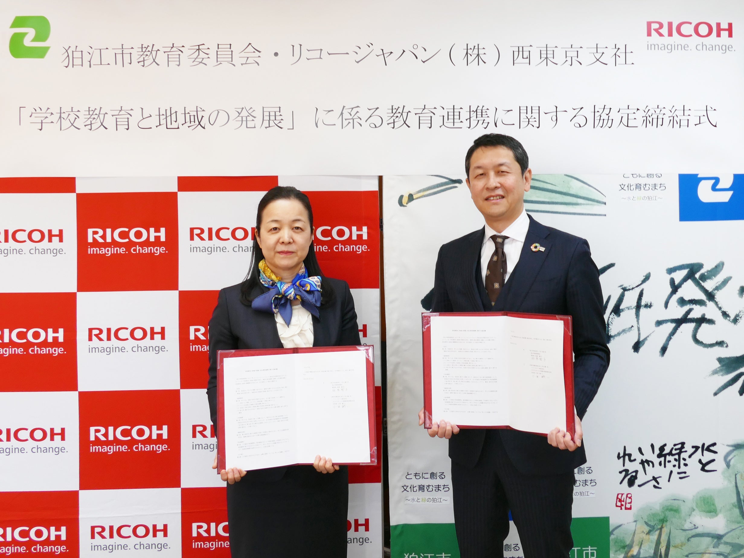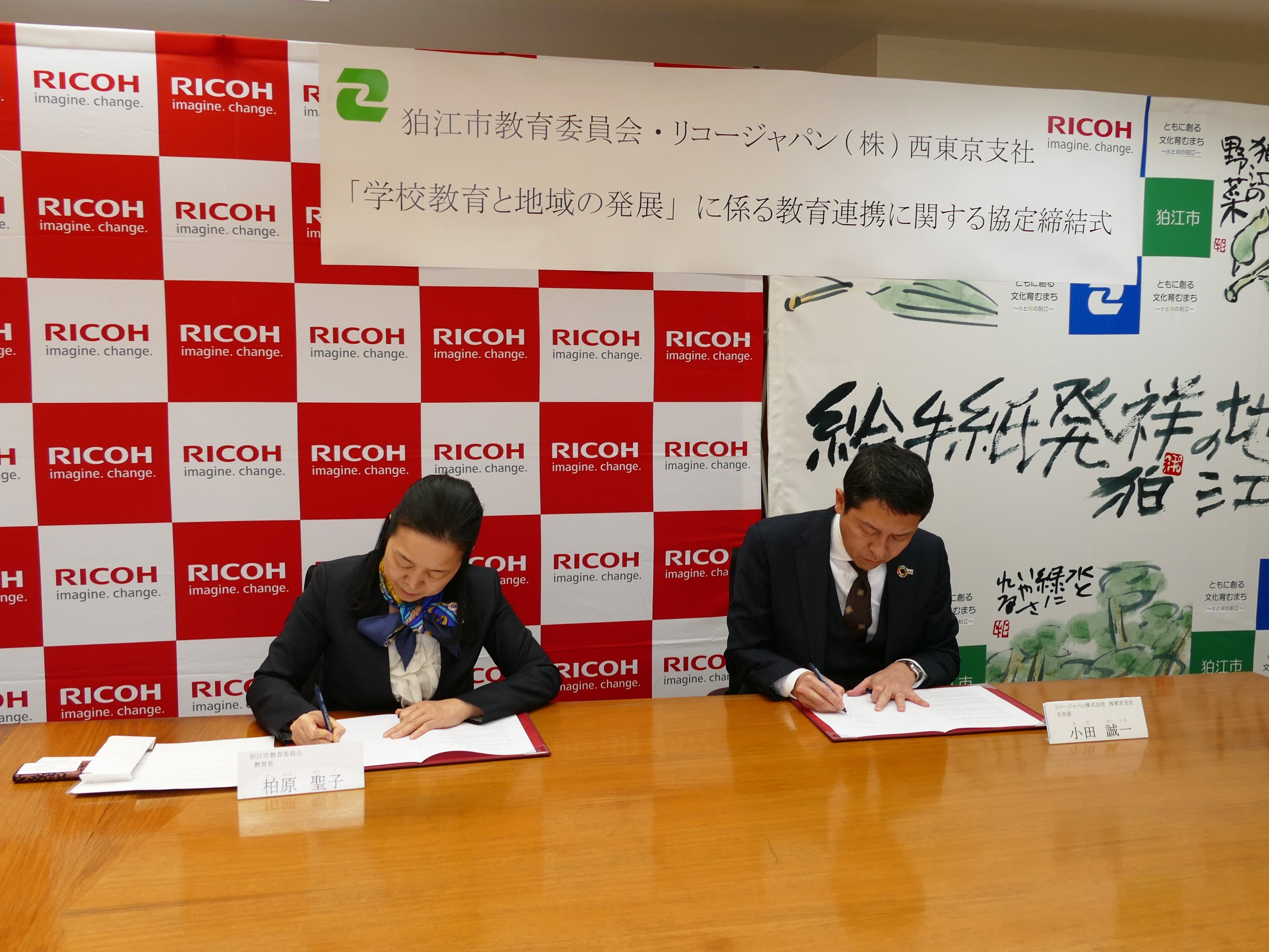 狛江市教育員会とリコージャパン西東京支社が連携・協力のもと、教育の分野における人的交流、知的・物的資源の相互活用を図り、地域社会の持続的な発展に寄与することを目的とする。