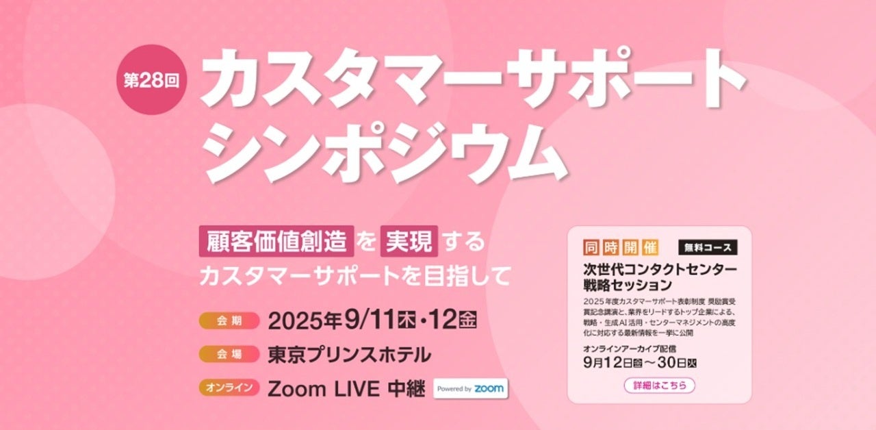 来る2025年9月11日(木)・12日(金)に開催される当協会主催「第28回 カスタマーサポートシンポジウム(会場:東京プリンスホテル/オンラインライブ配信併催)」にて表彰式典ならびに受賞各社による記念講演を執り行います。