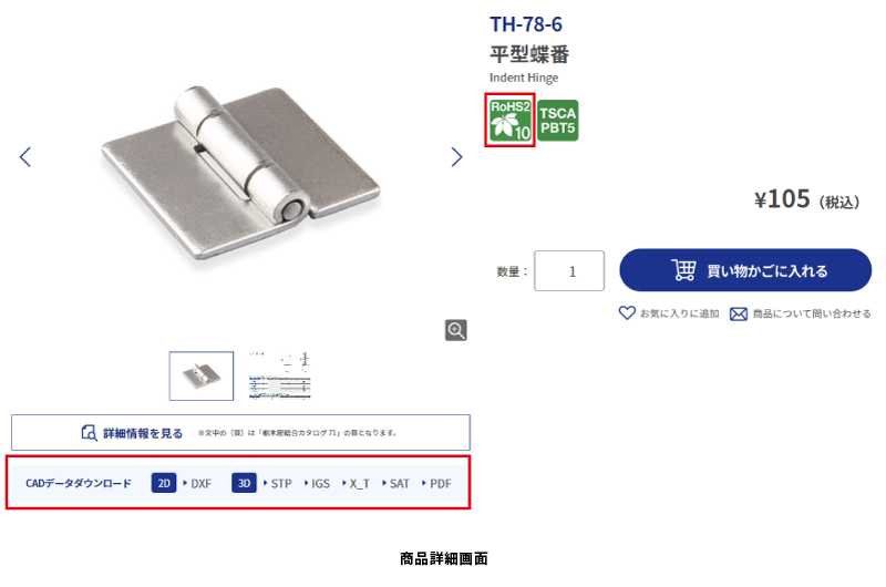 ②カート機能だけではない、データダウンロードや型番比較ができる商品詳細