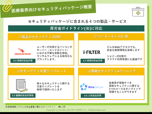 - 医療業界向けセキュリティパッケージのサービス提供内容