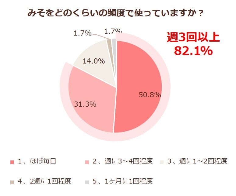 趣の異なる2種のみその試食体験を通して、参加者の76.5%が「料理によってみそを使い分けるようになった」、73.3%が「料理が美味しくなった」と回答。約9割が発売後に「購入したい」と回答し、約8割が購入後に料理に使う頻度は「週1回以上」と回答しました。