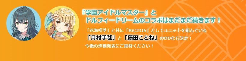 「花海咲季」と共に「Re;IRIS」としてユニットを組んでいる「月村手毬」と「藤田ことね」のDD化も決定! 今後の詳細発表にご期待ください!