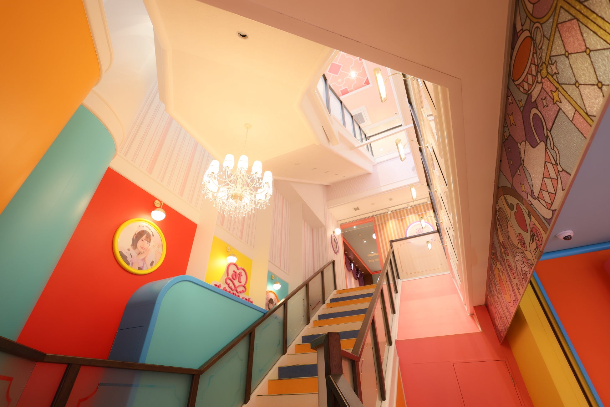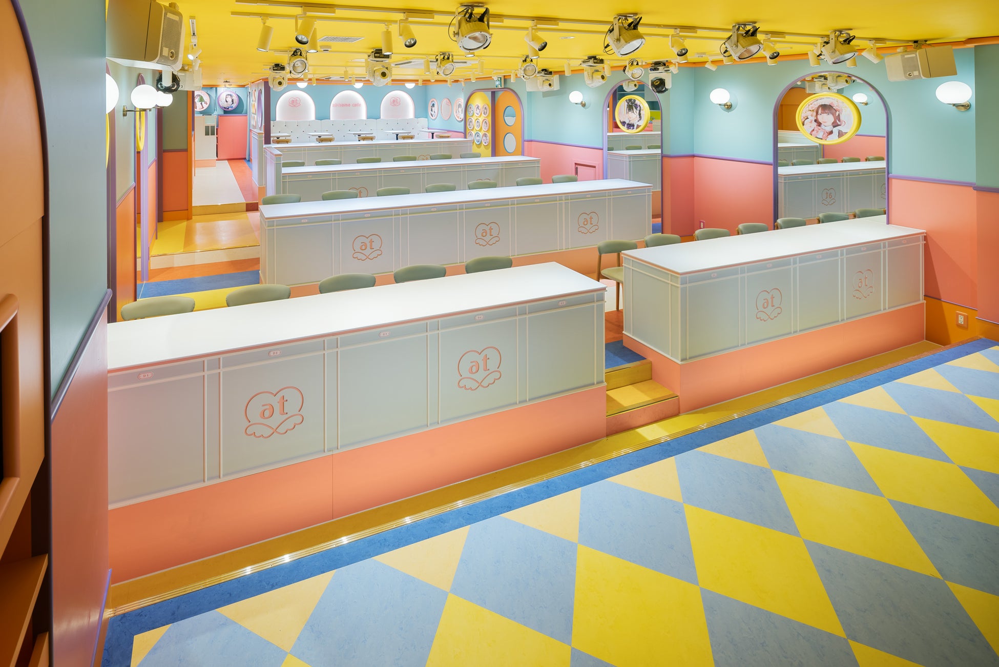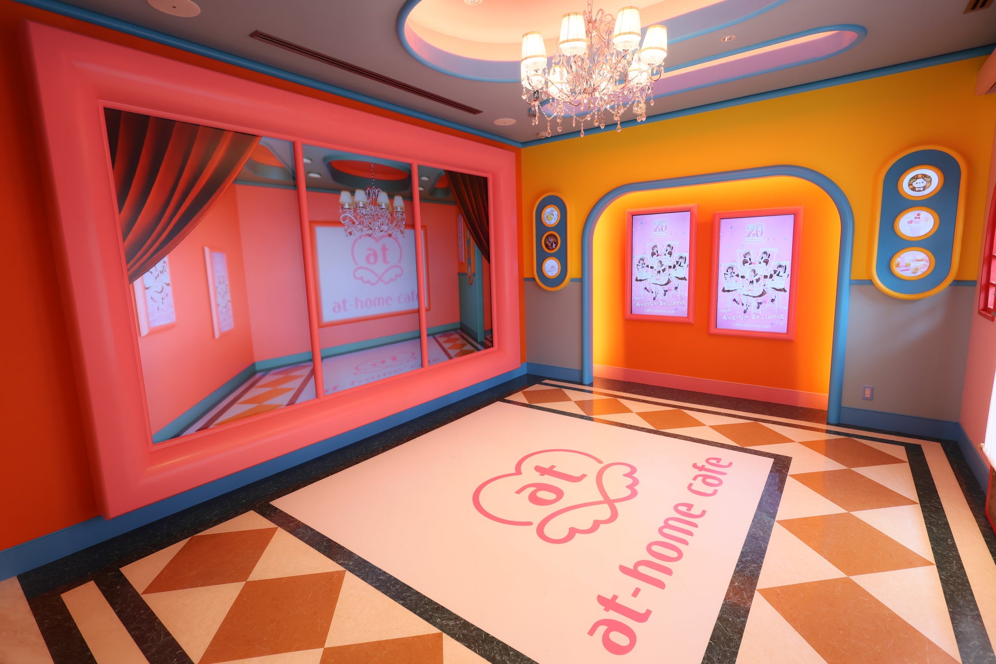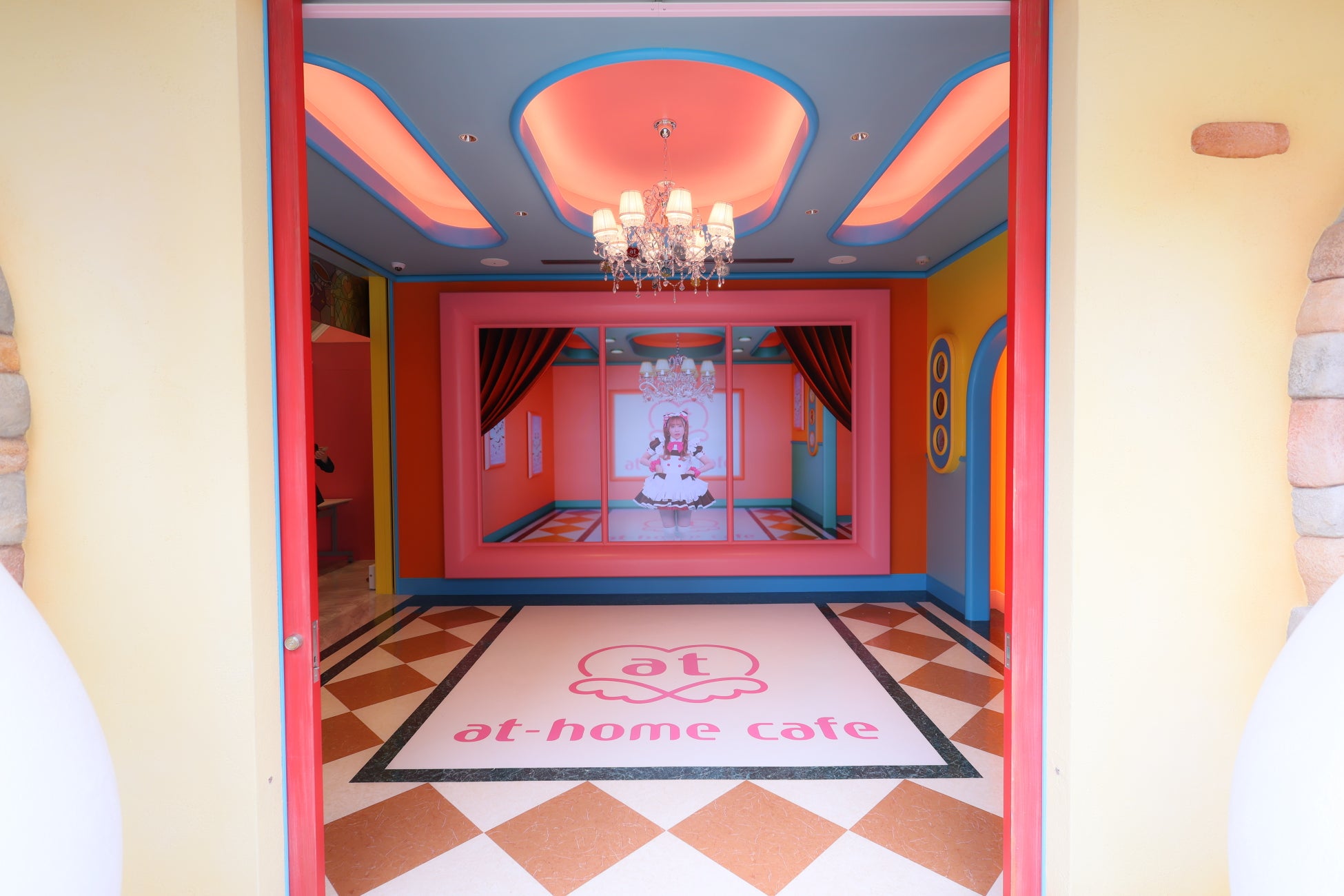 階段を上がると、今までにない沢山の色を使ったPOPなあっとほぉーむカフェが現れます。