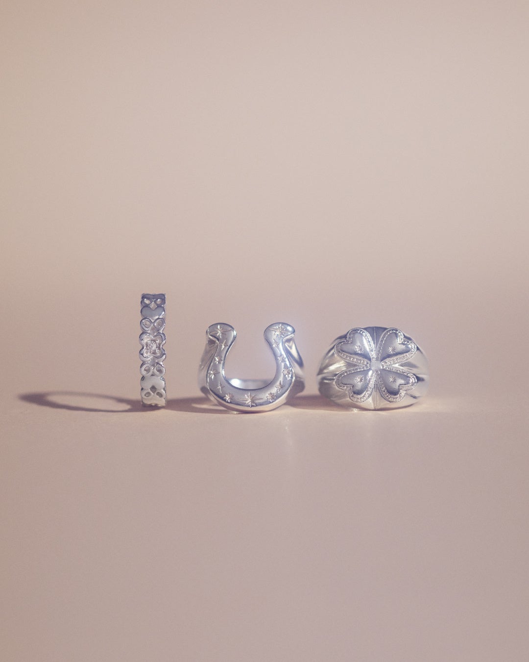 クラウンやクローバーなど、それぞれに幸運の意味が込められたラッキーモチーフたち。