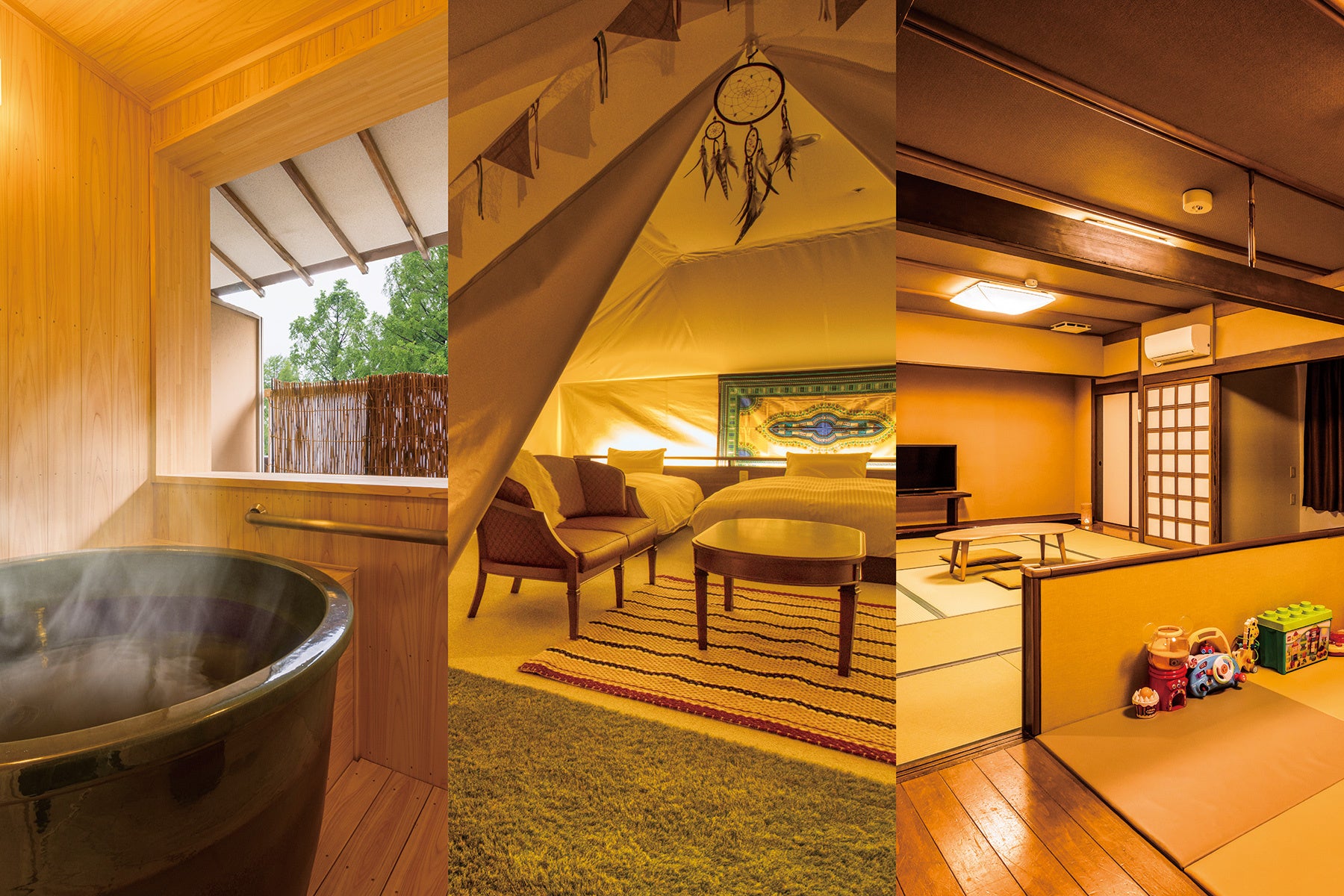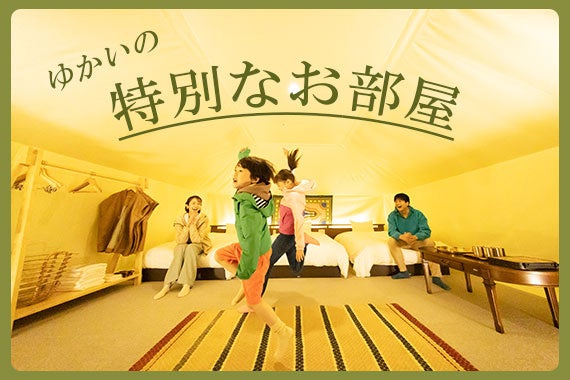 <室内グランピングルーム・キッズルーム和室・露天風呂付客室>湯快リゾート3ホテルで新タイプの客室が2月より順次オープン!ご予約受付中!