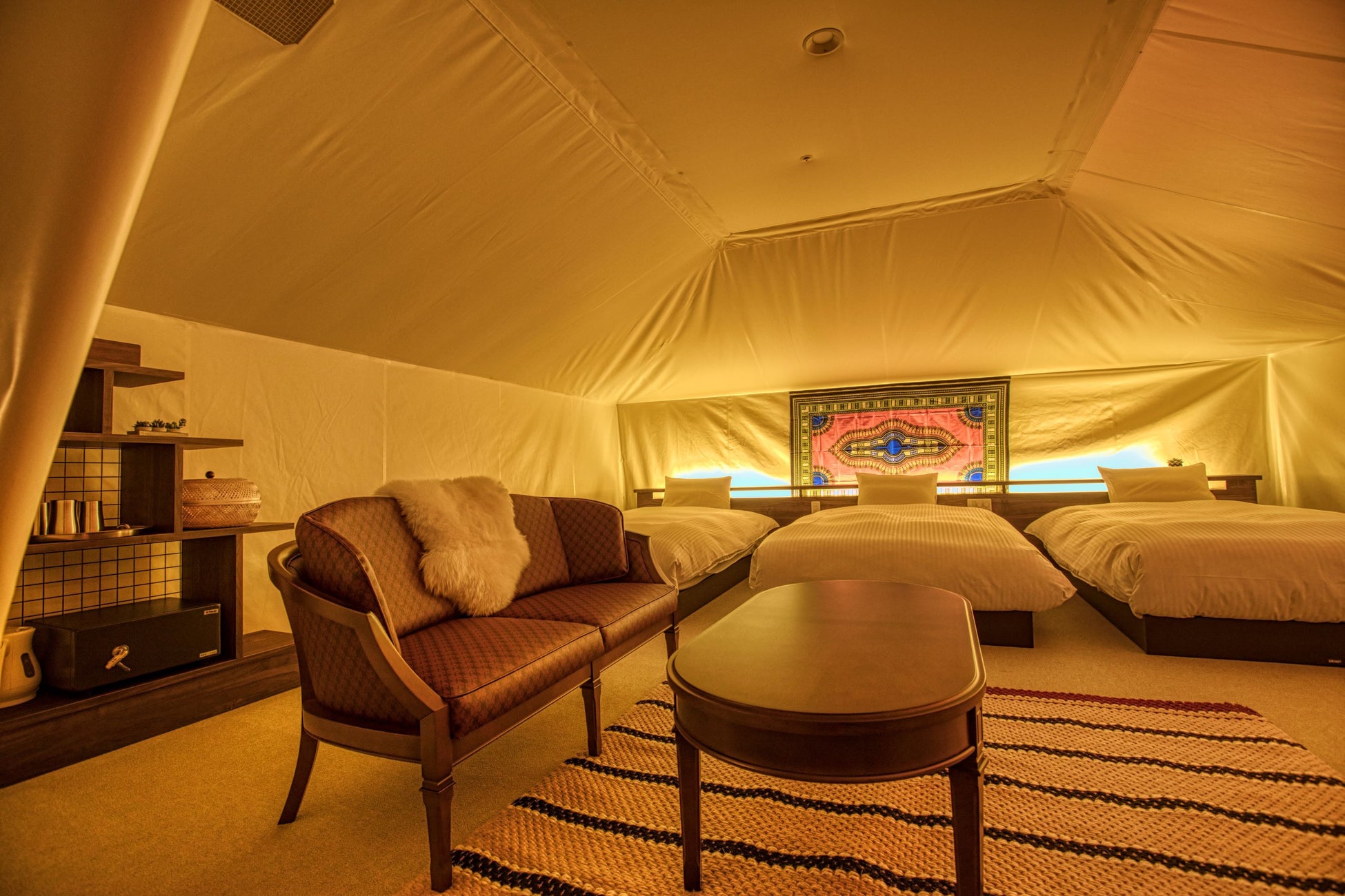 室内でグランピング体験ができる新感覚のお部屋です。大型テント内で本格的なグランピング設備を揃えており、雰囲気抜群です。ホテル内にあるため、普段ご利用いただくお部屋と同じ感覚でご利用いただけます。