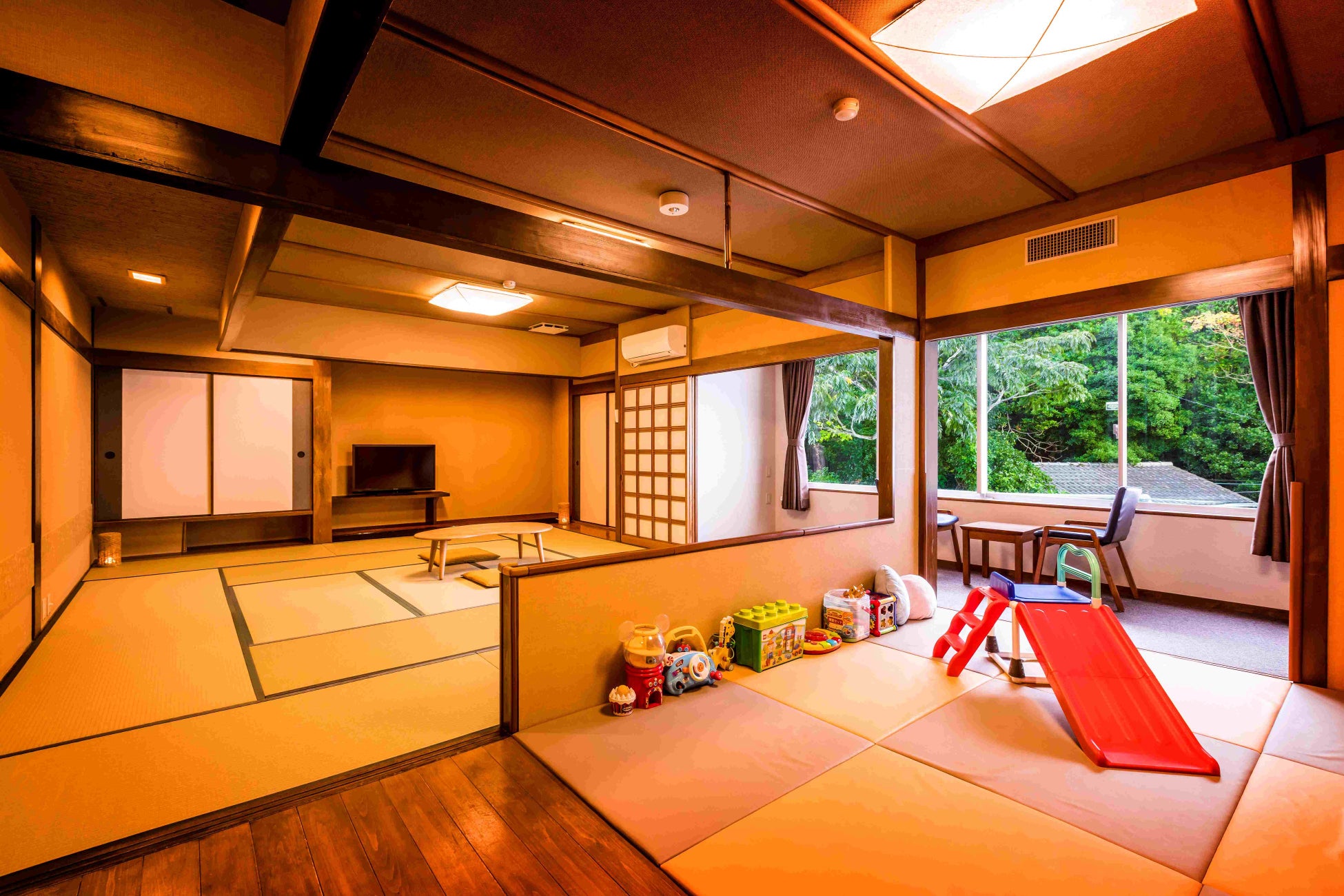 ゆったり寛げる和室にキッズコーナーが設置されています。遊べるスペースがあることにより、お子様も遊具で遊べ楽しく旅行を過ごしていただけます。白浜彩朝楽では2室のキッズルーム部屋がございましたが、ご要望が多く、この度4室のお部屋を追加でオープンいたします。