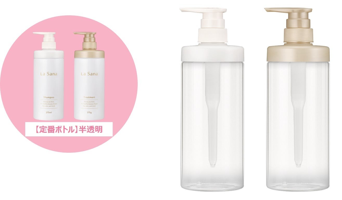 そこで今回、こうしたお客様の声に応える形で、ボディ部分を透明にしたシャンプー・トリートメント専用空ボトルを開発。詰め替え用のデザインを含めて、日々のヘアケアを楽しめる仕様のボトルを限定発売する運びとなりました。ラサーナはこれからも、お客様の声に耳を傾けながらお客様と共に成長するブランドを目指します。