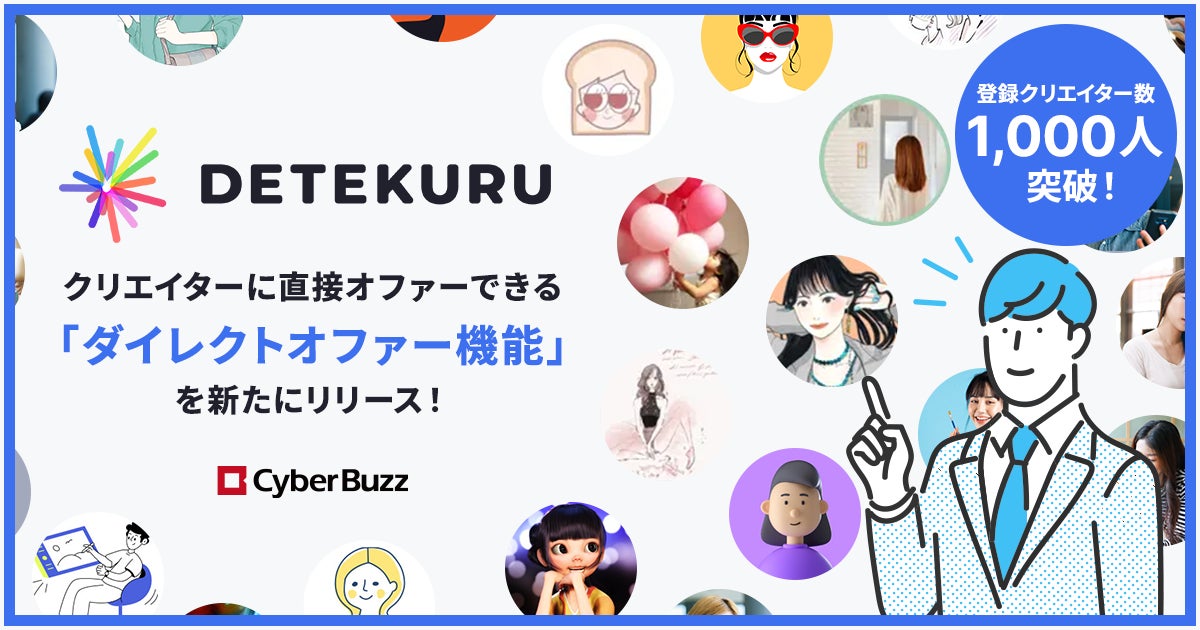 サイバー・バズのクリエイターマッチングサービス 「DETEKURU」、登録クリエイター数1,000人を突破!好きなクリエイターに直接チャットでオファーできるダイレクトオファー機能も新たにリリース