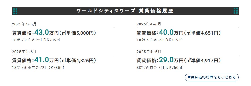 本機能は、マンションごとの過去の賃貸価格を最大50件確認できる機能です。