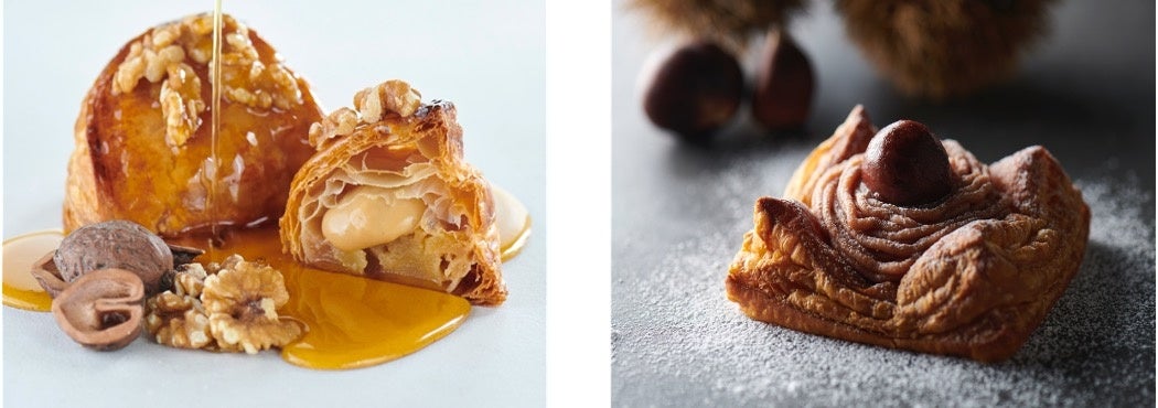 秋から冬にかけて肌寒さを感じる季節。RINGOから、寒さを感じる時期に恋しくなる“濃厚な味わい”を代表する食材を使ったデザートパイを販売します。「焼きたてカスタードアップルパイ メープルウォールナッツ」は、カスタードクリームにカナダ・ケベック州産のメープルシロップを混ぜ合わせることにより、通常のアップルパイとはまたひと味違った風味豊かな甘さの余韻を、さらに相性の良いクルミのコクと食感を楽しめます。オーブンで2〜3分温めても美味しくお召し上がりいただけます。「モンブランパイ」は、フランス産のマロンクリームなどを使用して素材の良さを引き立てる仕上がりに。濃厚なトッピングとバター香るサクサクのパイは、楽しい食感と満足感を得られるデザートパイです。温かい紅茶と一緒に、いつもよりもちょっとリッチな朝食やおやつの時間をお楽しみください。