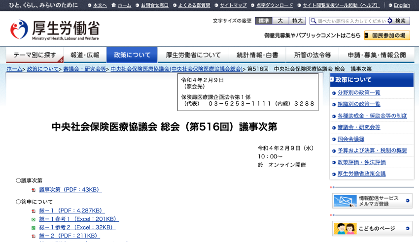 第516回総会資料(P325〜)https://www.mhlw.go.jp/content/12404000/000894888.pdf