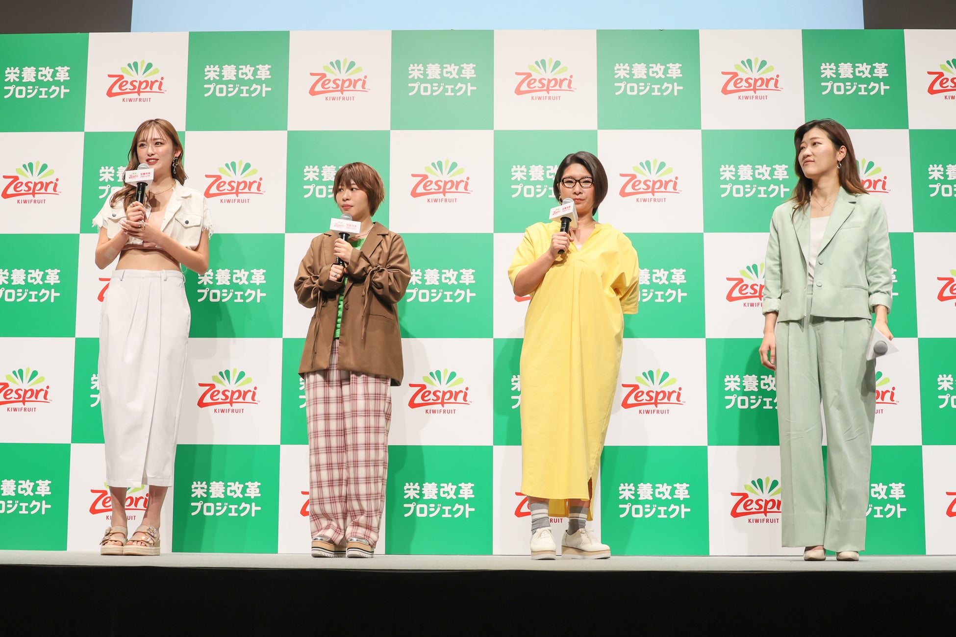 本プロジェクトの本格スタートに先駆け、「ゼスプリ栄養改革プロジェクト&新CM発表会」を2024年7月29日(月)、スパイラルホール(東京都港区)にて開催しました。当日は、くわばた りえさん、Aマッソ・加納さん、ヒコロヒーさん、ゆうちゃみさんをお招きしてトークショーを行いました。
