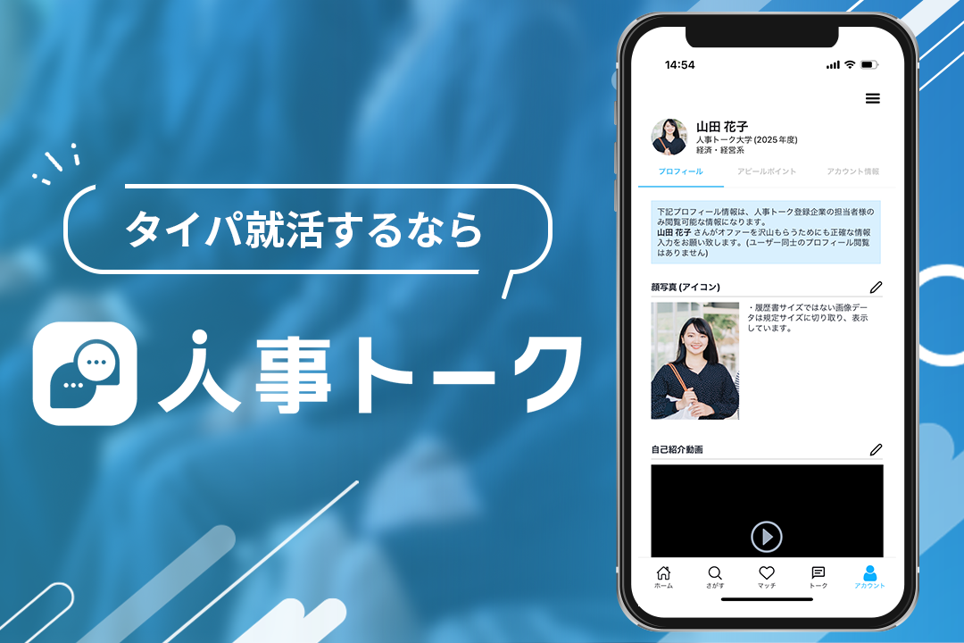 動画付き履歴書を作成できる機能搭載の人事と学生が気軽に繋がれるマッチングアプリ「人事トーク」をリリース