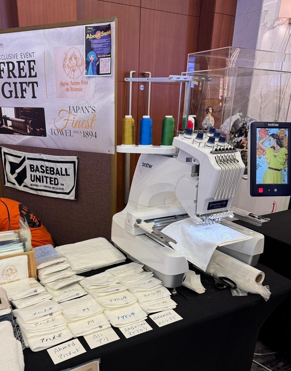 さらに、「Japan Anime Fest 2025 in Bahrain」の公式キャラクターであるSanaちゃんの刺繍入り記念タオルを特別に製作し、今治タオルを多くの方の手に届けることができました。