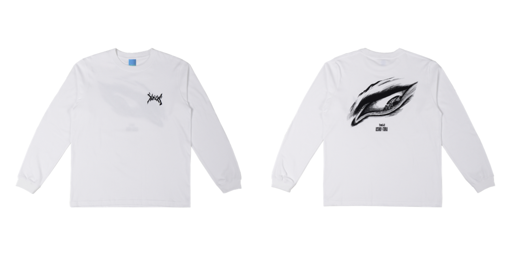 『うしおととら』第四十八章「雷鳴の海」其ノ九「憎しみの海」より、作品内で特に印象的に描かれる、白面の目にフォーカスしたLong Sleeve Tee。ボディは5.6oz、プリントはシルクスクリーンプリント。