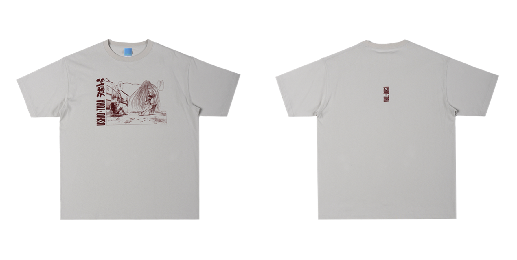 『うしおととら』単行本第22巻より。作品の醍醐味のひとつであるポップなイラストをプリントしたTシャツのホワイトバージョン。ボディは9.1oz、ビッグシルエット。プリントはシルクスクリーンプリント。