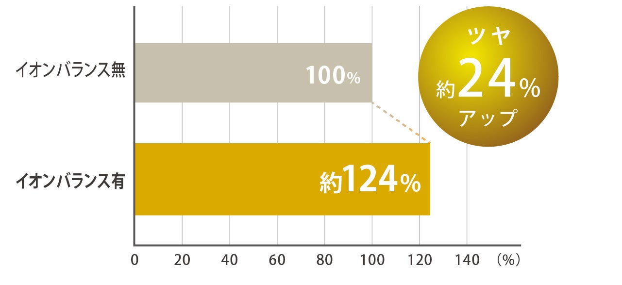 (※3)【試験方法】毛束の光沢をイオンバランスの有無で測定比較。