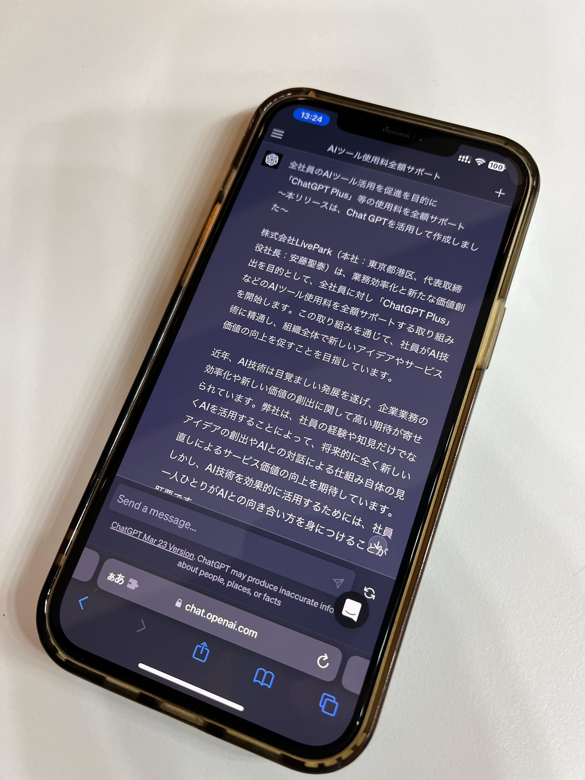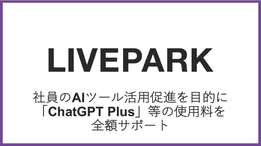 株式会社LivePark(本社:東京都港区、代表取締役社長:安藤聖泰)は、業務効率化と新たな価値創出を目的として、全社員に対し「ChatGPT Plus」などのAIツール使用料を全額サポートする取り組みを開始します。この取り組みを通じて、社員がAI技術に精通し、組織全体で新しいアイデアやサービス価値の向上を促すことを目指しています。
