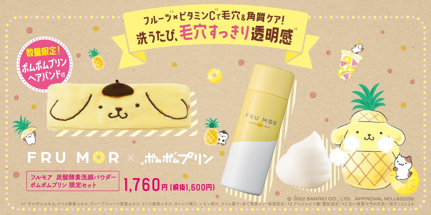 msh株式会社は、高機能 毛穴・角質ケアブランド「フルモア」より、大人気の炭酸酵素洗顔パウダーに『ポムポムプリン』のヘアバンドをつけた限定セットを、8月3日(水)よりmsh公式オンラインショップにて数量限定で発売します。