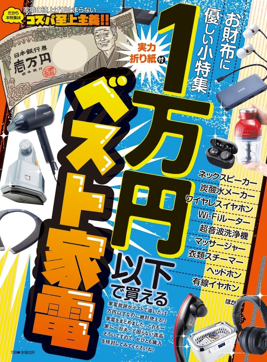 家電批評がテストで導いた「1万円以下なのに絶対使える!」家電をご紹介。どれも一家に一台あって困らない逸品ぞろい。お財布に優しいアイテムをぜひチェックしてください。