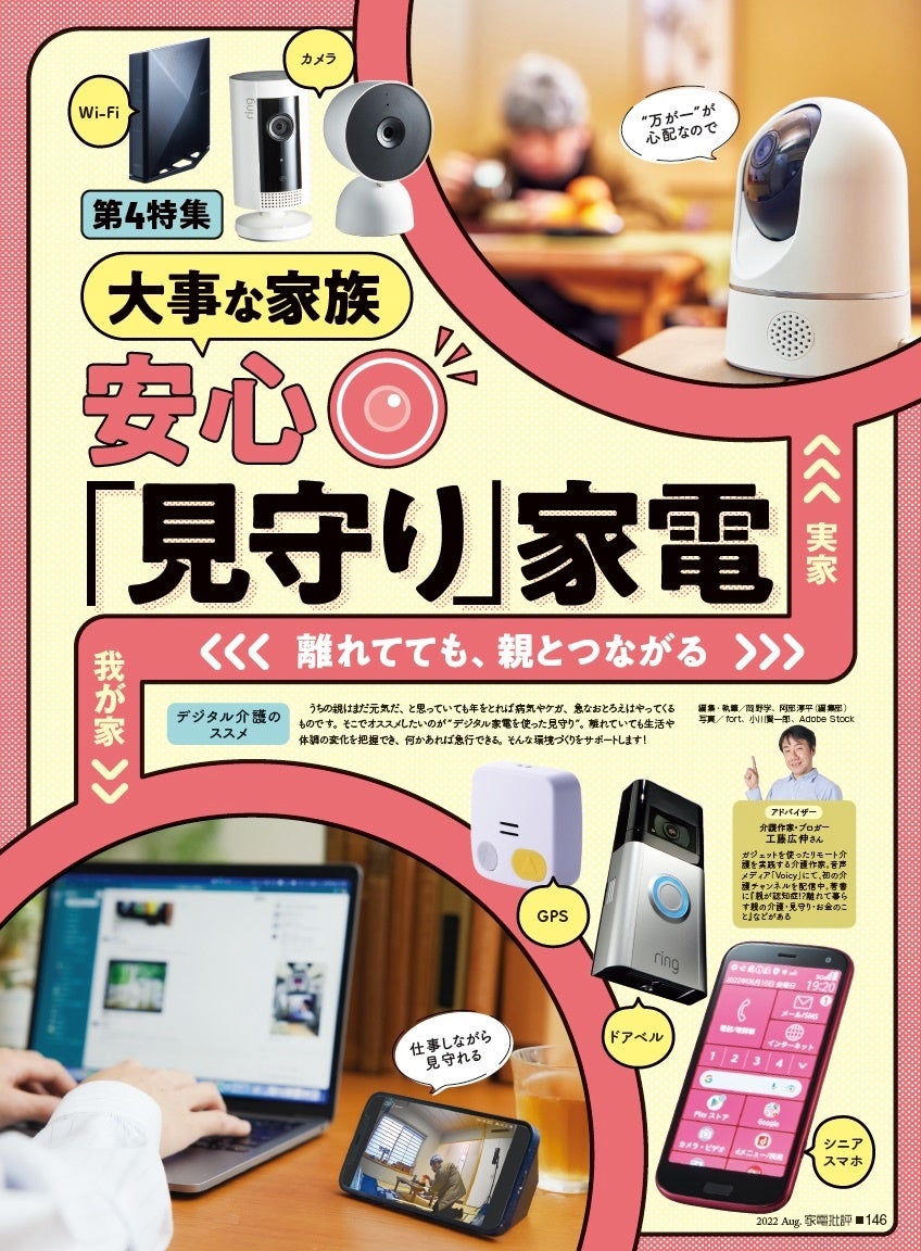 うちの親はまだ元気だ、と思っていても年をとれば病気やケガ、急なおとろえはやってくるものです。そこでオススメしたいのが“デジタル家電を使った見守り”。離れていても生活や体調の変化を把握でき、何かあれば急行できる。そんな環境づくりをサポートします!