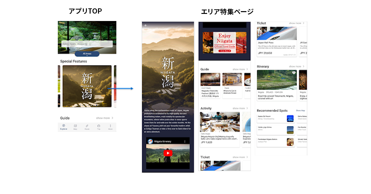 記事による認知から、施設予約などに必要なサービスサイトへの誘致、交通情報を利用した目的地へのナビゲーションなど、日本での旅行に必要なサービスをワンストップで行うことが可能です。