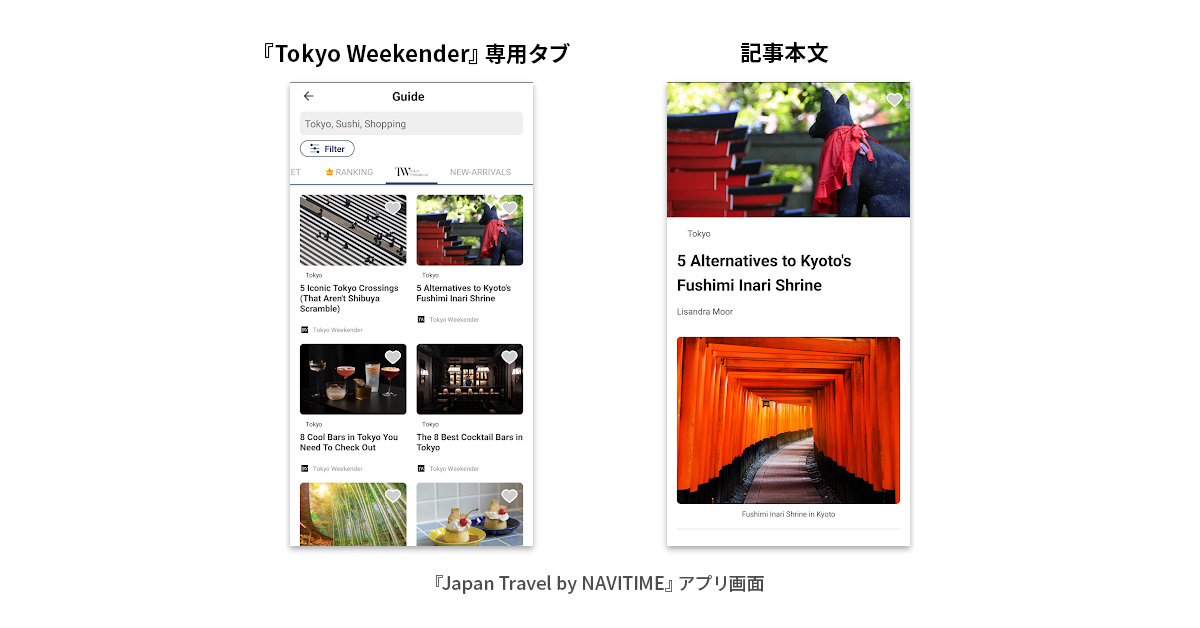 『Japan Travel by NAVITIME』アプリで『Tokyo Weekender』の記事提供を開始。インバウンドに向けたプロモーション商材を共同で販売