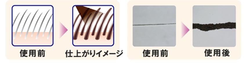 ※1 微粉末が髪1本1本に付着することで太い髪を演出。メーキャップ効果による