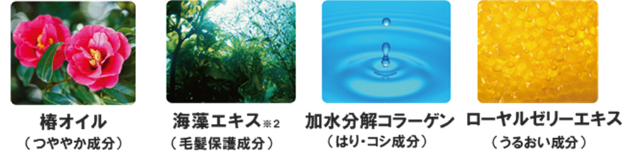 ■椿オイルや海藻エキスなど髪にやさしい4つのトリートメント成分