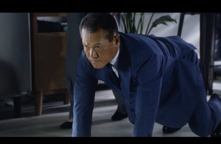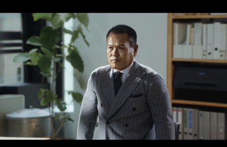 人生初のジャージースーツを着た山田勝己さんがオフィスで驚異の身体能力を披露!“拭き掃除ローラー” “椅子あん馬”“落とし物ランジ”でスーツの伸縮性を訴求するWEB CMを公開!