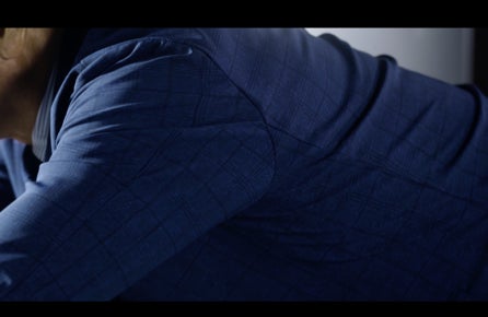 今回の撮影でジャージー素材のスーツ及びダブルスーツを初めて着用した、スーツ1年生・山田さん。ジャージースーツを着用し、「椅子の肘掛けをあん馬に見立て、足を上へまっすぐに持ち上げる」「床スレスレまで腹筋ローラーのように腕を伸ばしながら、床にこぼれたコーヒーを拭く」「ランジの姿勢で、散らかしてしまった書類を拾い上げる」といった山田さんの身体能力を活かした3つの動きを展開。ジャージースーツの凛とした立体感と優れた伸縮性を訴求する動画となっています。
