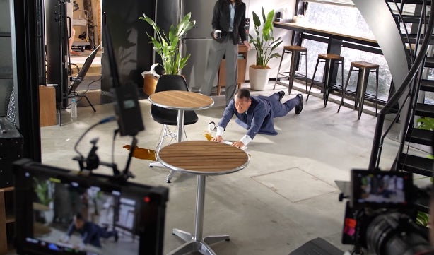 メイキング映像では、山田さんが床にこぼれたコーヒー拭きに4〜5回挑戦し、膝をつくことなく、いずれも床ギリギリの体勢から雑巾を元に戻るまで完遂する様子が収められています。また、ご自身では30点と厳しい自己評価を下したあん馬のシーンでも、補助なしで10回挑戦し、いずれも足をきれいに上げ切る姿が映し出されており、改めて山田さんの身体能力の高さと凄さが感じられる映像となっています。