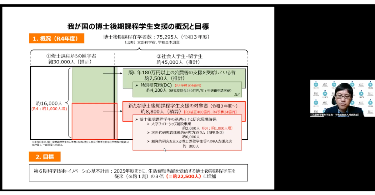 - <基調講演②|「我が国の博士人材に関する最近の政策動向について」文部科学省 科学技術・学術政策局 人材政策課 課長補佐 鈴木悟司氏>