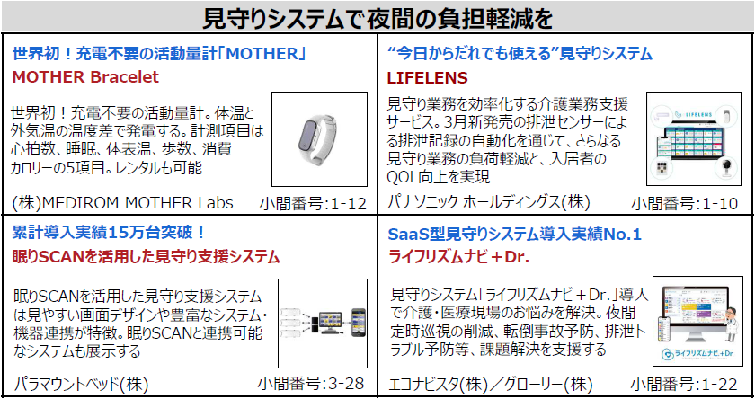 この他にも、介護現場・介護施設の課題解決を⽀援する多数の企業、商品・サービスが出展︕