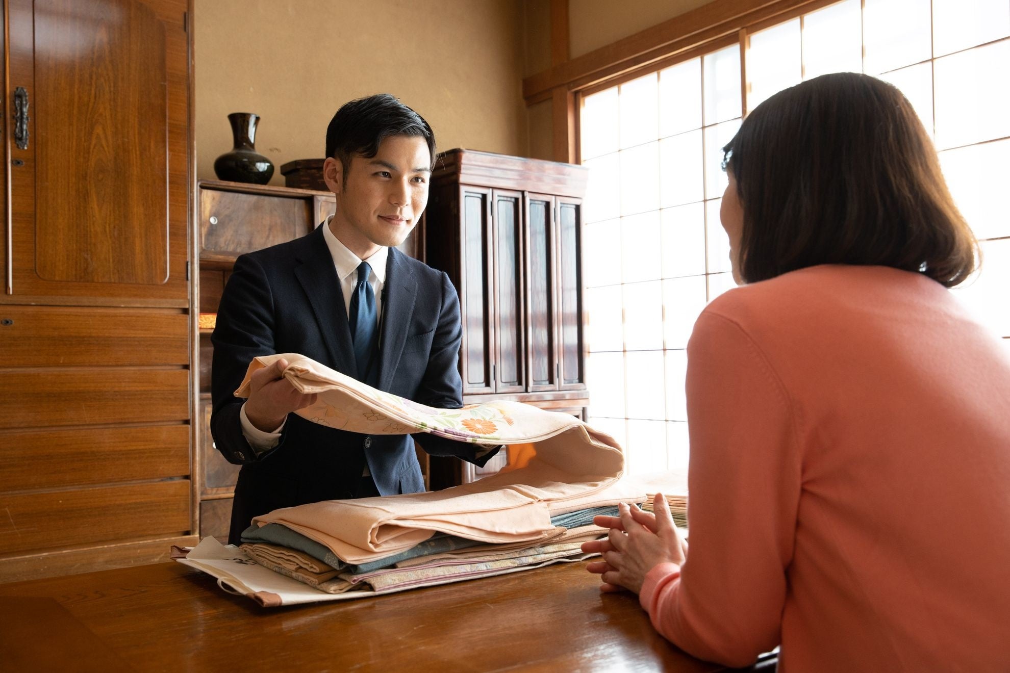 販売事業では、買取した商品を自社一元管理し、自社ECやECモール、BtoBの古物オークションなど、toB/toC問わず日本国内から世界まで、最適なチャネルへ流通させています。商材としては着物・切手・ブランド品等の高価格帯商材を中心に、家々に眠る”かくれ資産”を多く取り扱っています。