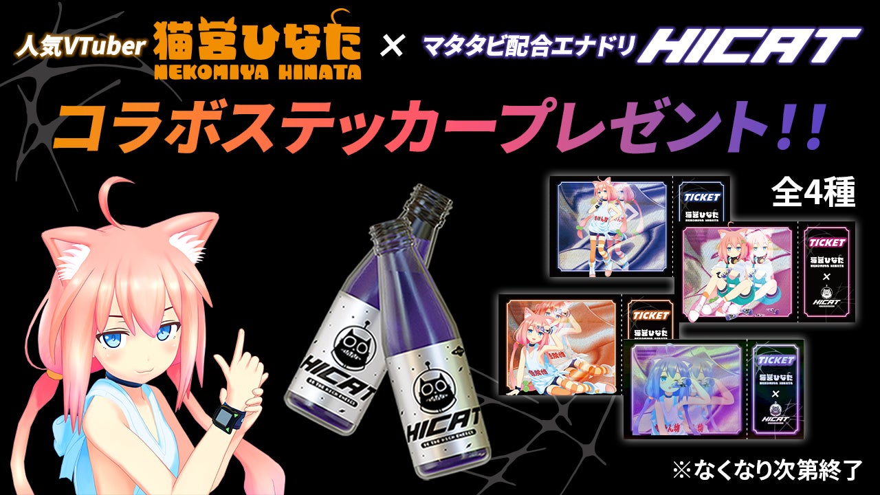 【期間限定コラボ】VTuber猫宮ひなた×マタタビ配合エナドリHICAT購入者全員にコラボステッカーをプレゼント!